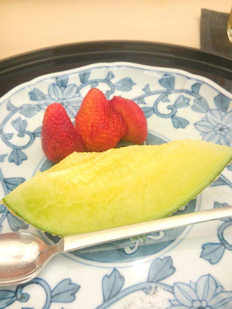 デザートにはイチゴとメロンをいただきました。