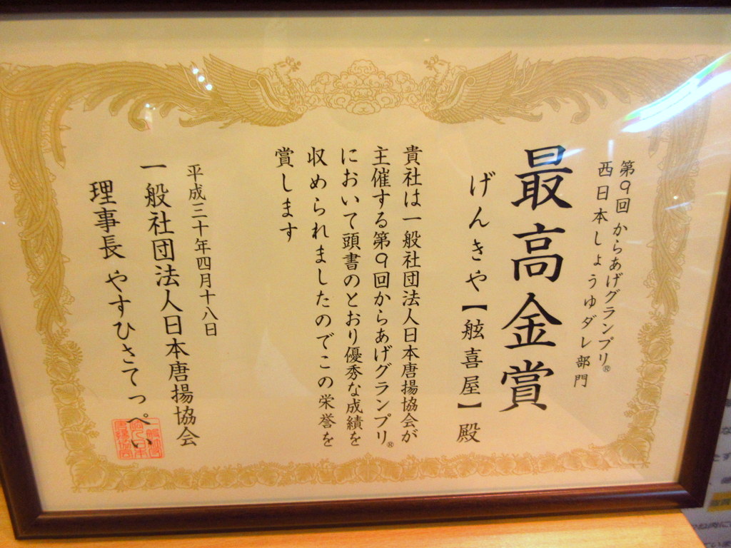 第9回唐揚げグランプリ西日本醤油ダレ部門最高金賞を