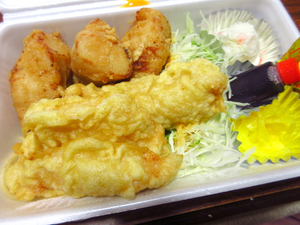 ボリュームのあるとり天と鶏胸肉の唐揚げ3個がついています。