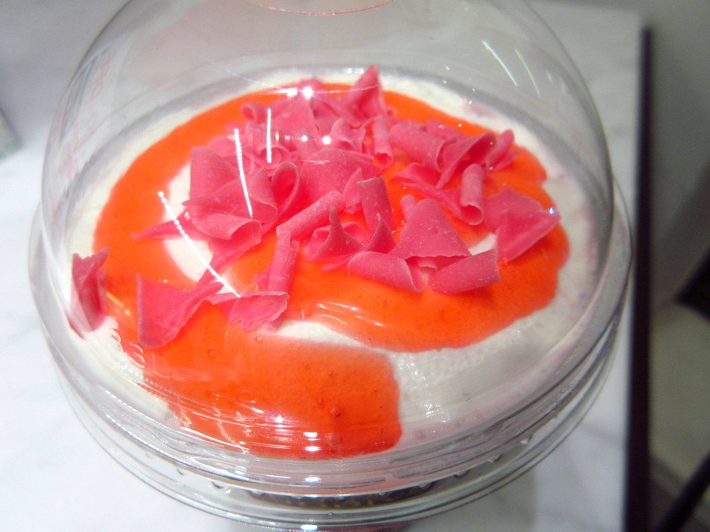 上の桜ソースと花びらのチョコレートは赤くて映えますね。