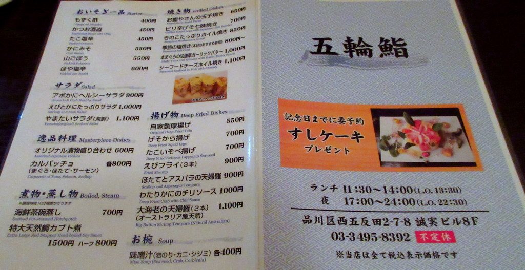 今日は 五反田 駅の西口から徒歩1分 の ところにある、 五輪鮨に行きました。
