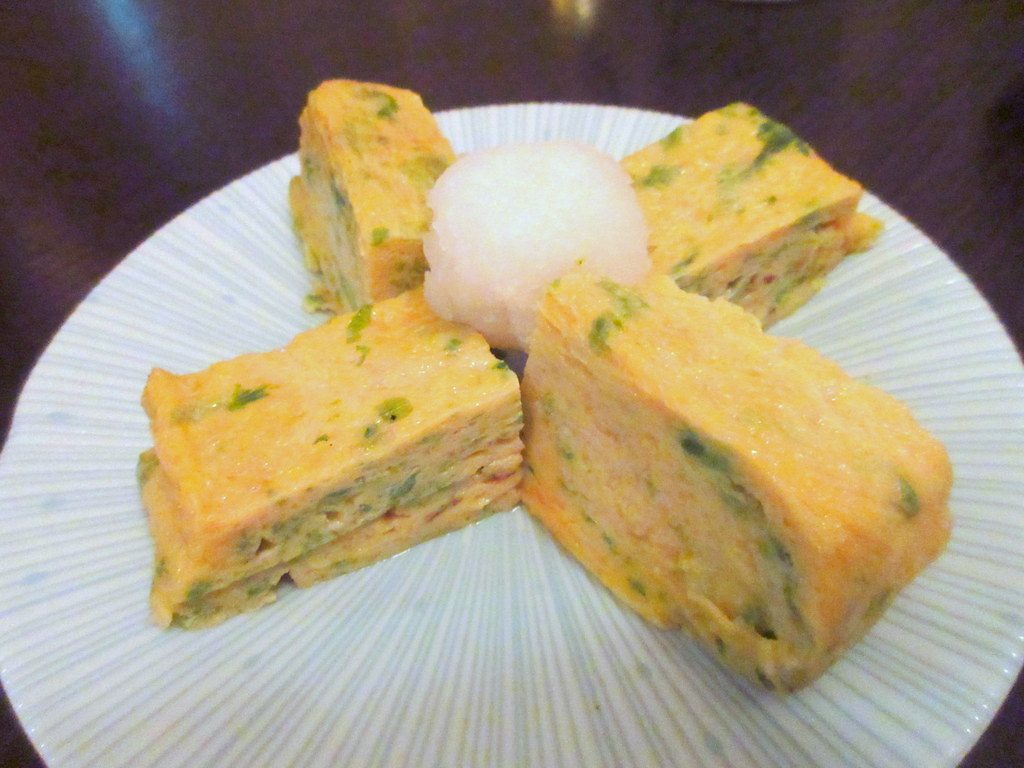 中にあおさのり(岩ノリ?)が混ぜられている卵焼きです。