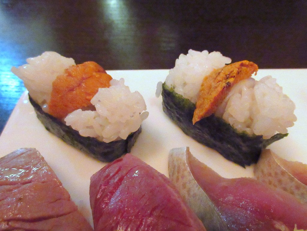 イメージとは全然違った!ウニが 挟まれていて、ホタテが下に隠れています。