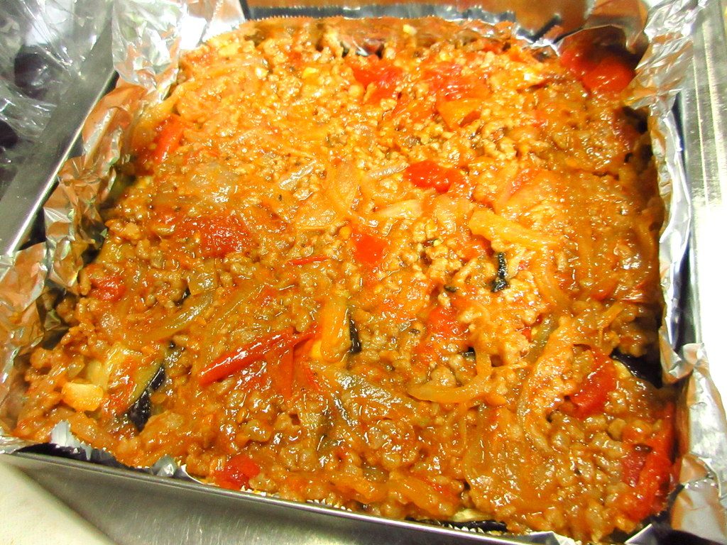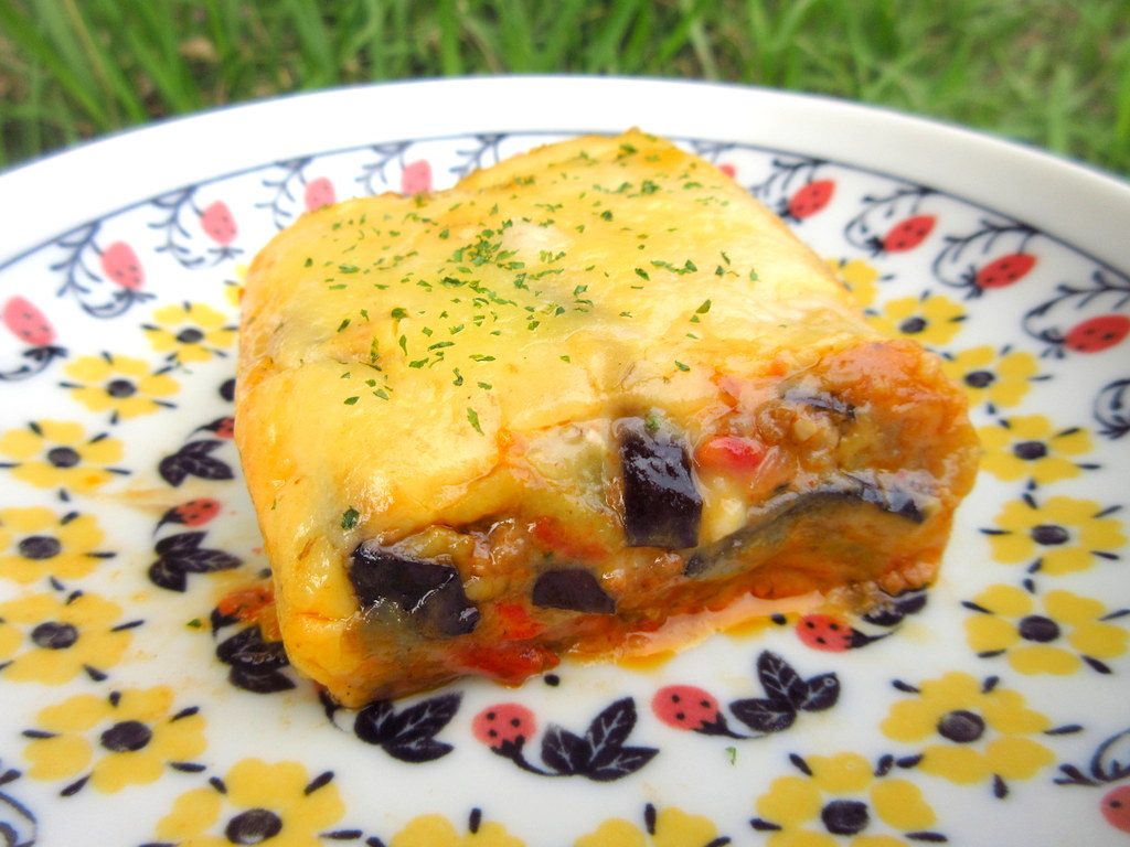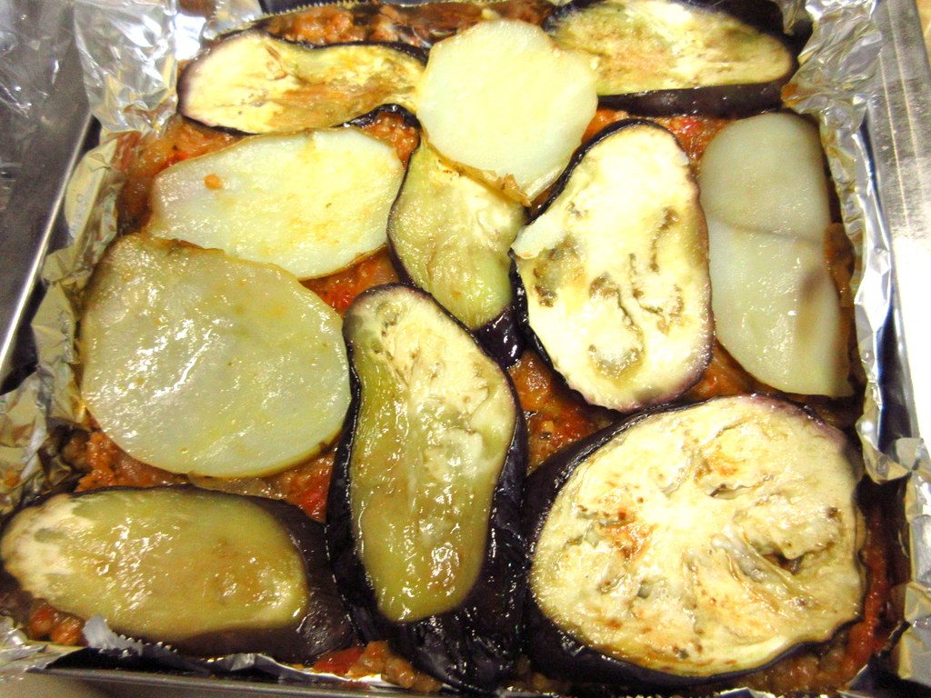 なすやジャガイモなどの野菜と、ミートソース、チーズが入ったベシャメルソースが層になった、