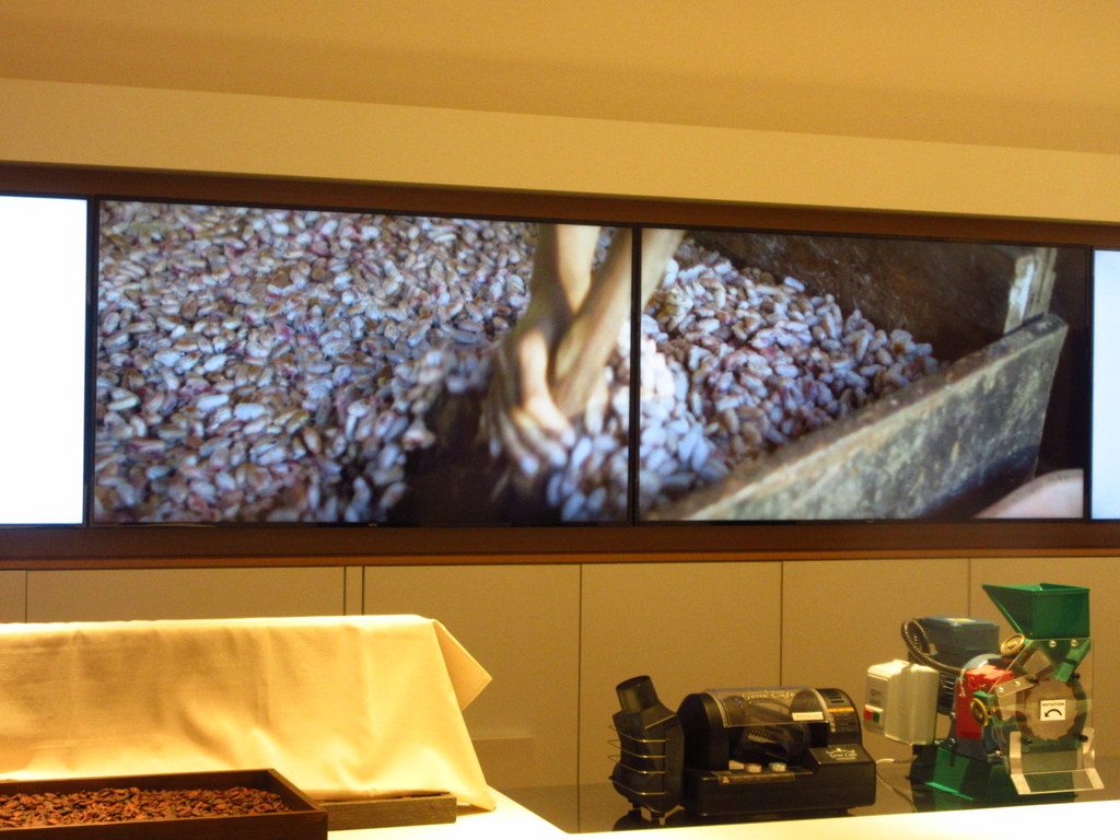 目の前にはチョコレートができるまでに使用するマシーンが実際に置いてあり、