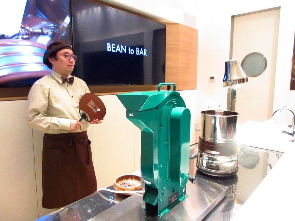 目の前にはチョコレートができるまでに使用するマシーンが実際に置いてあり、