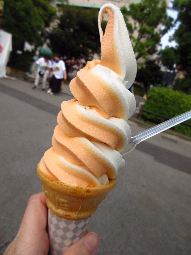 北海道ミルクソフトと夕張メロンのミックスソフトクリーム 400円