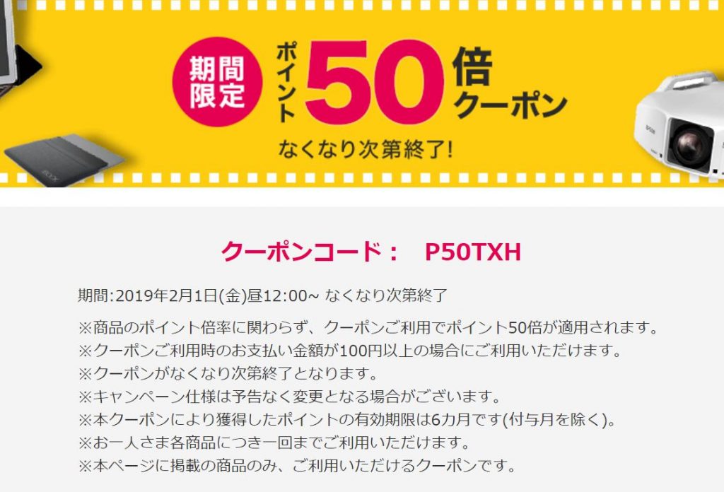 クーポンコードを入力することによって、商品代金の50%がポイントとしてキャッシュバックされるため、実質半額になるのです。