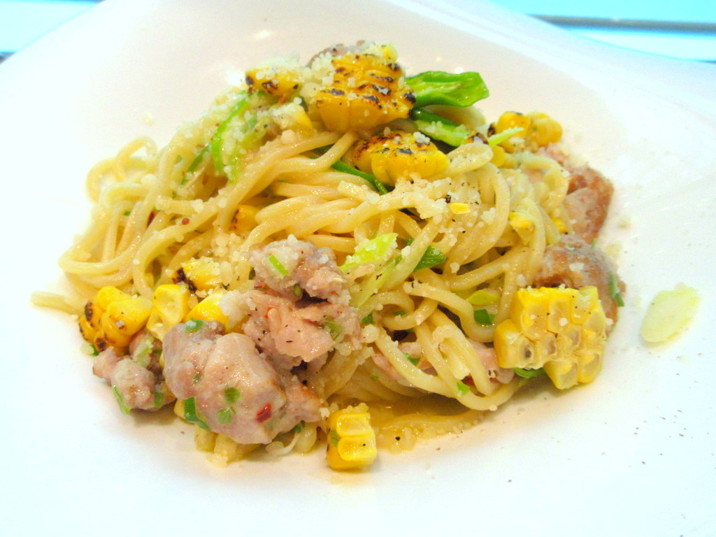 こんなふうにトウモロコシが粒で入ってるパスタは珍しいですね。