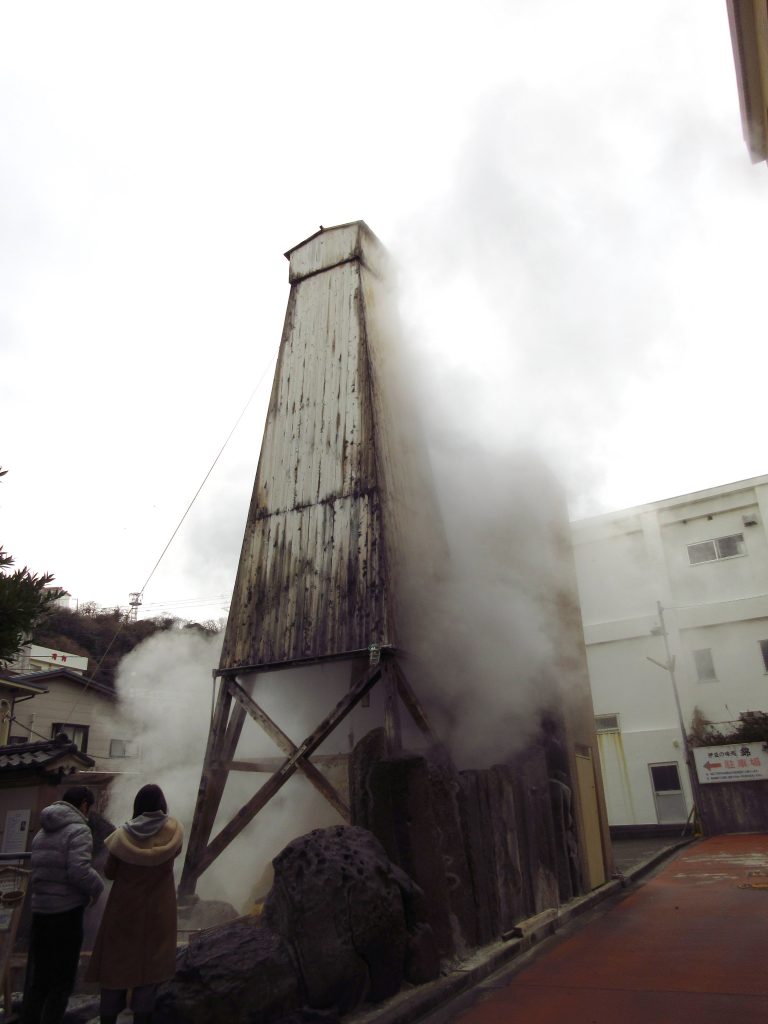 お湯が勢いよく湧き出しているので、遠くからでも湯気が良い目印になりました。