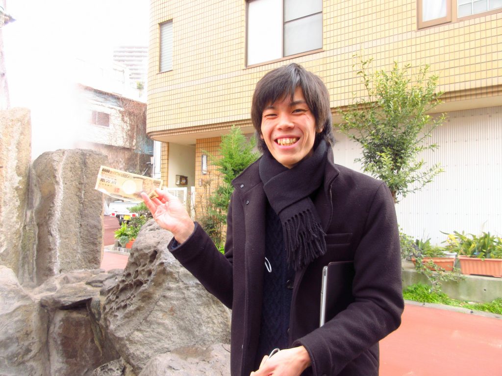 お話を伺うと、このお札で宝くじを買ったら当たるよ!と楽しそうな様子で、