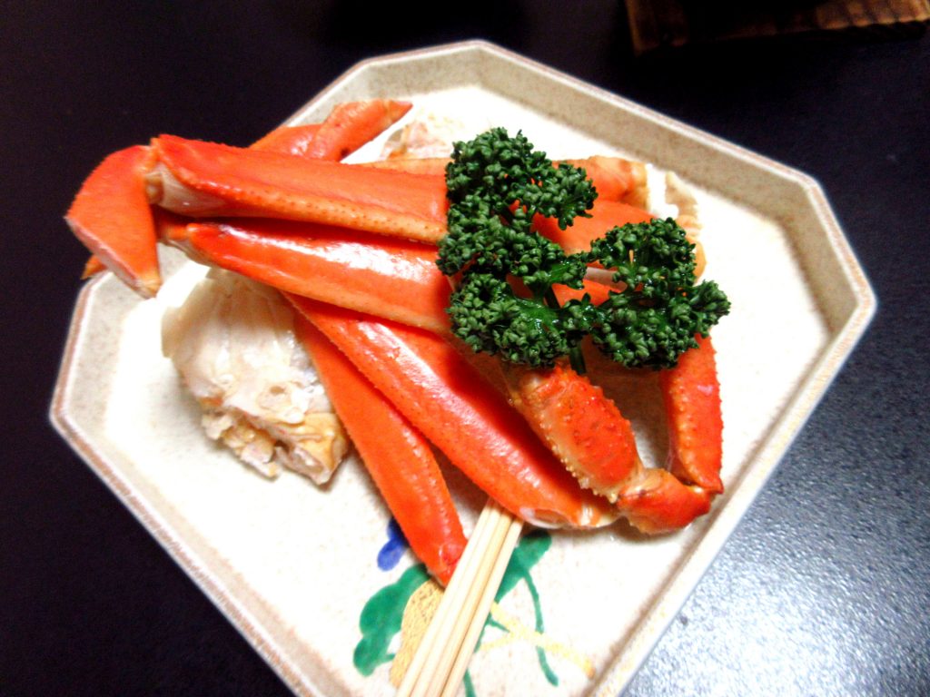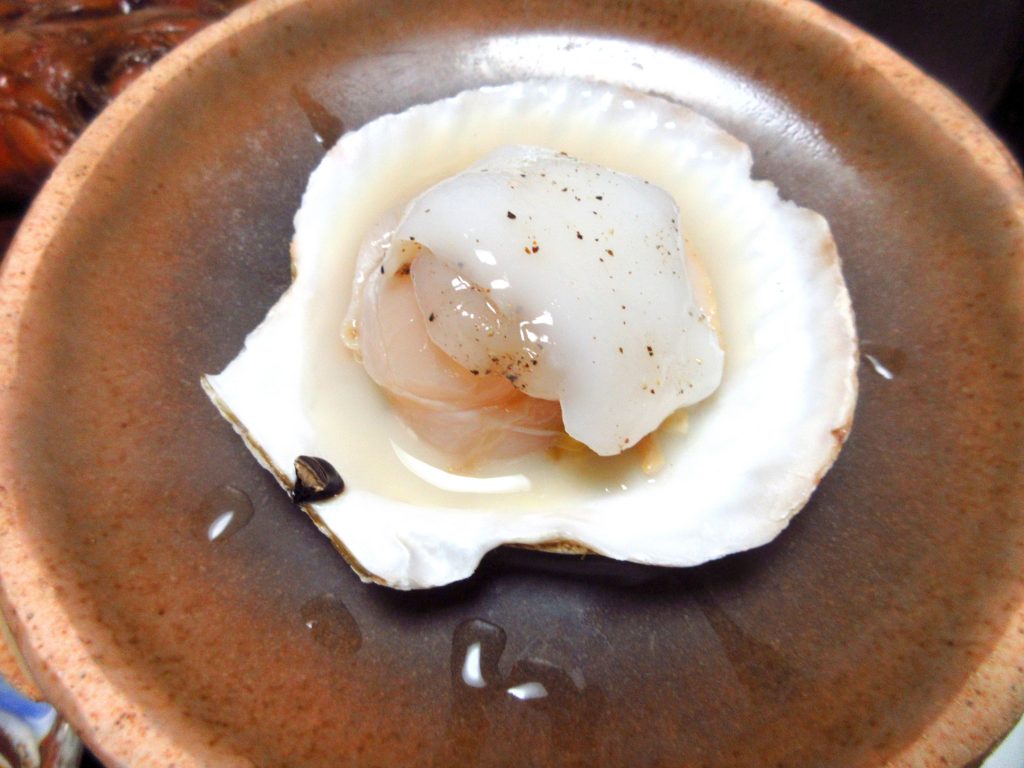 ホタテの陶板焼きや、茹でガニ、お刺身など、海鮮メインの豪華なお食事でした。