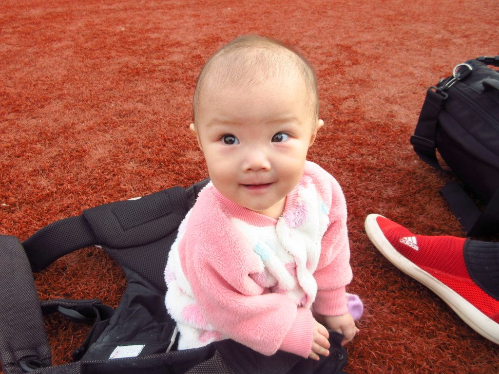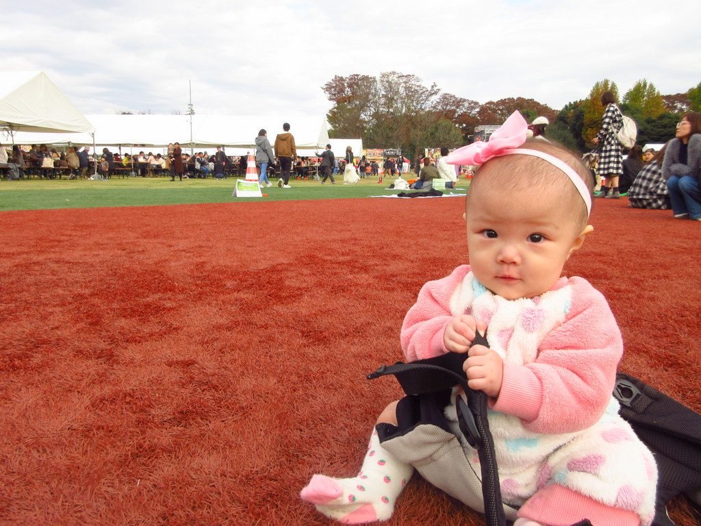 初めて赤ちゃんを 抱っこ紐から降ろして地面に座らせてみました!