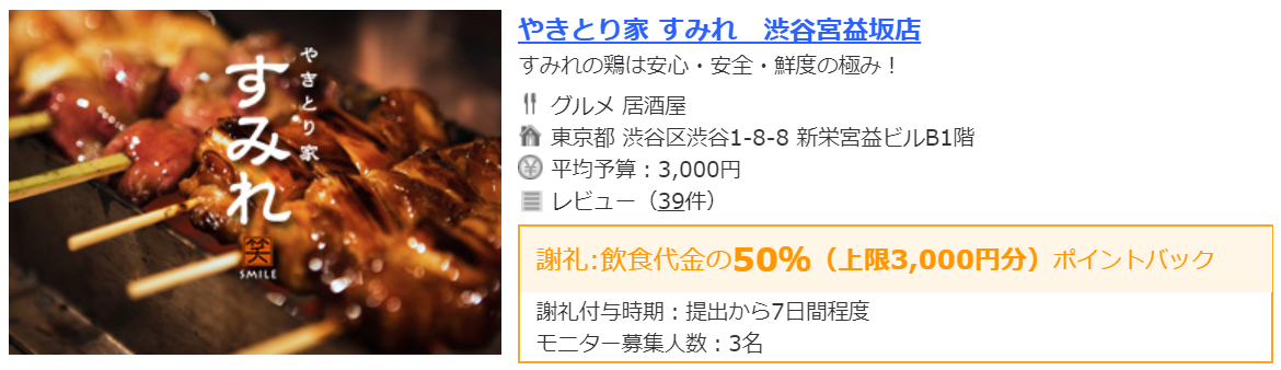 また、焼鳥屋すみれは、コチラのサイトでモニターに応募し、