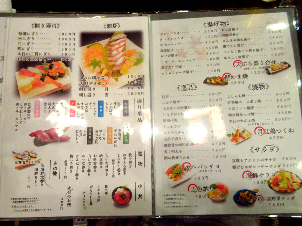 お寿司だけでなく、揚げ物や焼き物など居酒屋メニューも一通り置いてありました。