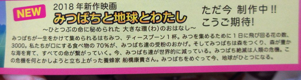 2018年新作映画は「みつばちと地球とわたし~ひとつぶのいのちに秘められた大きな環(わ)のお話~」
