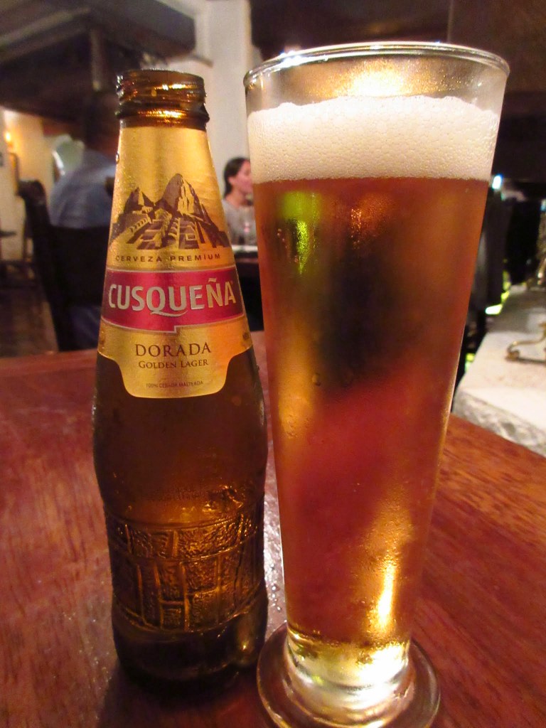 まずはペルーを代表するビール「クスケーニャ」で乾杯!
