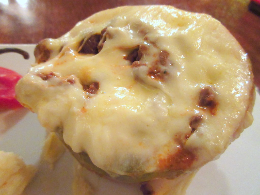 手作り感のあるミートソースと、とろけるチーズがパプリカの中に詰められていて、
