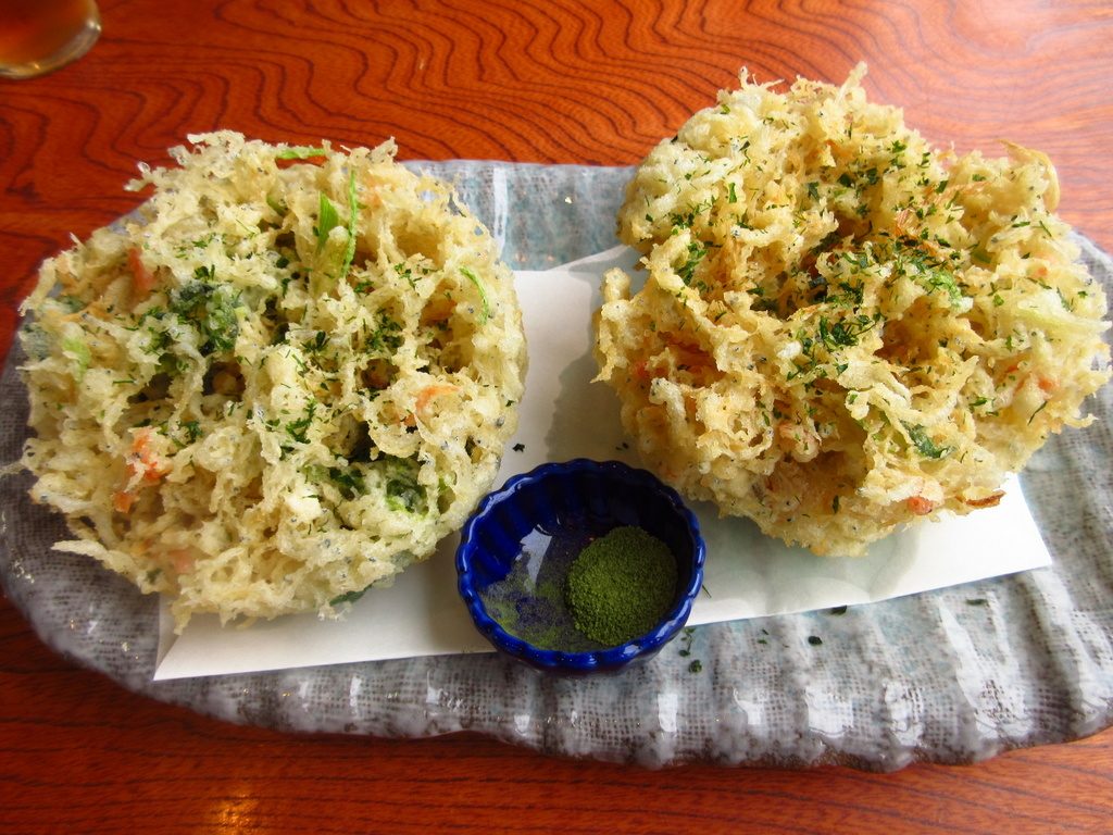 かき揚げって脂っこいものが多いですが、これはしつこくなくサクサクと