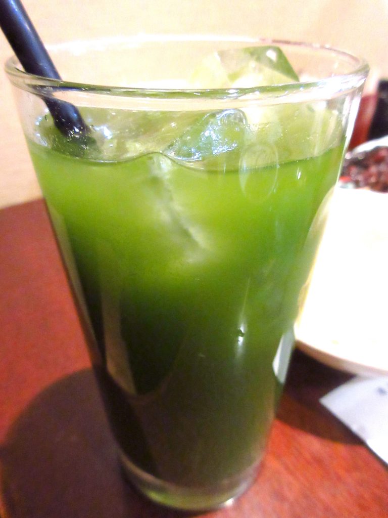 ドリンクは、くわの葉茶です。見た目、青汁みたいですが、とても飲みやすかった!
