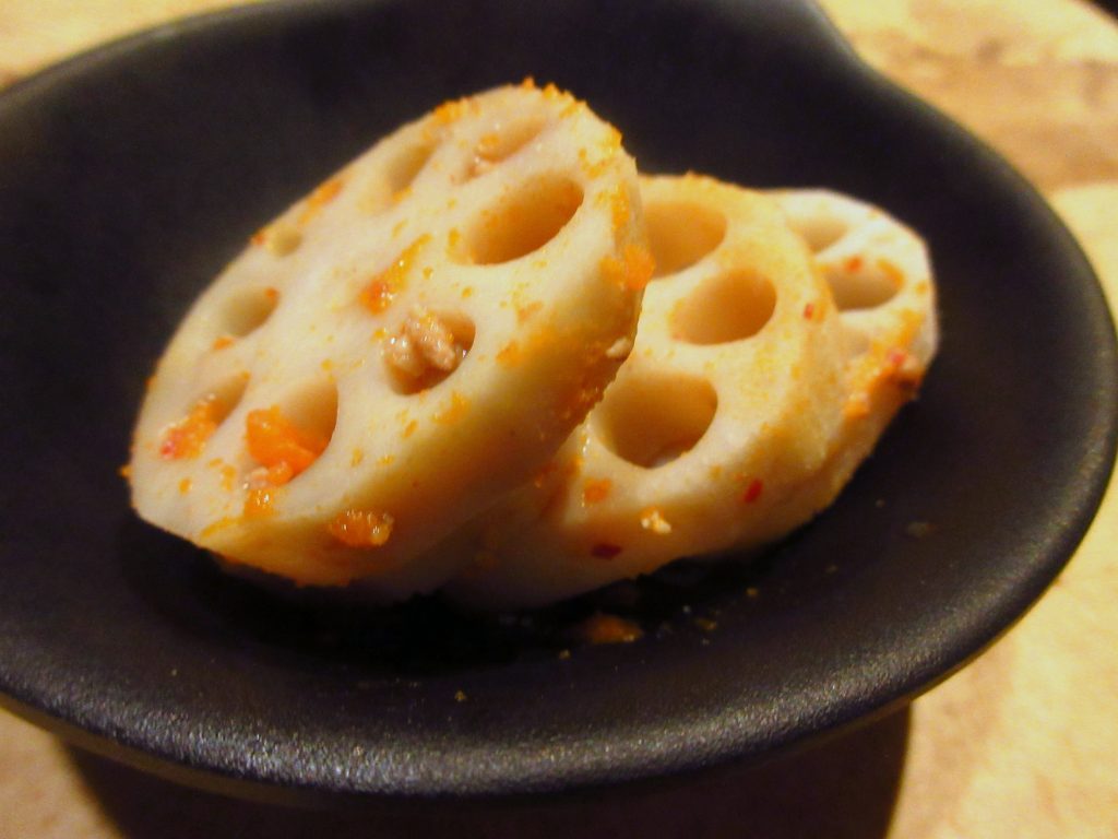 まずは生ビールで乾杯♡ お通しはレンコンでした~。