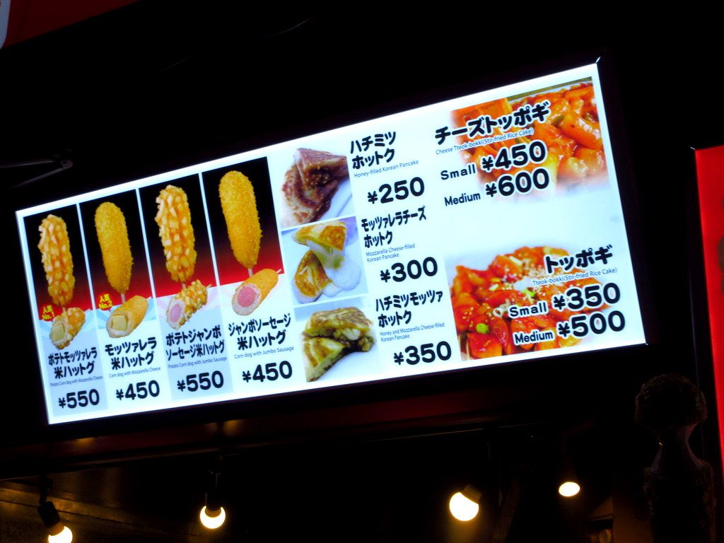 チーズハットグだけでなく、普通のホットクや韓国料理であるトッポギなどの