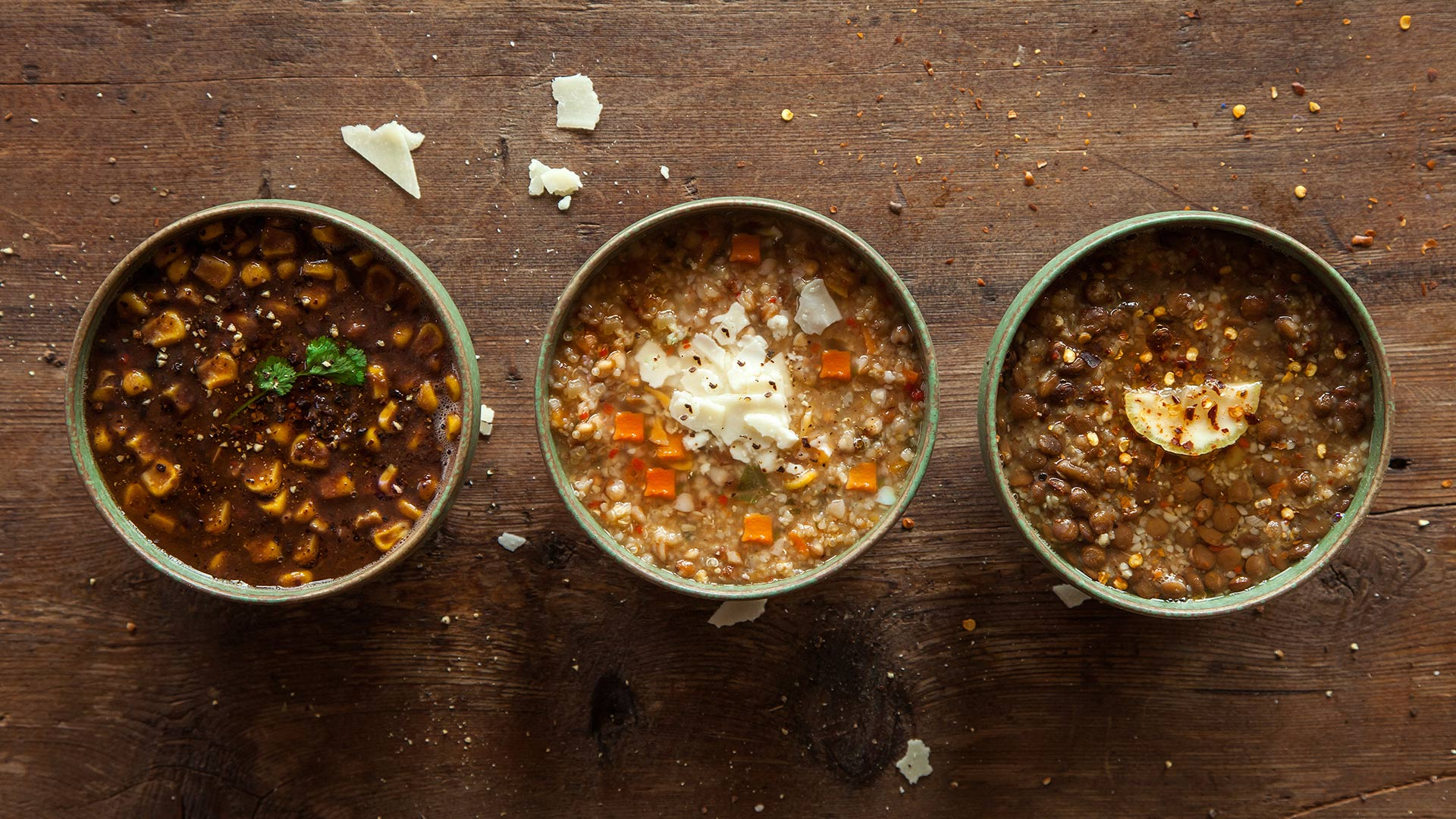 緑レンズ豆のスープやレッドビーンチリのオープンサンドは、