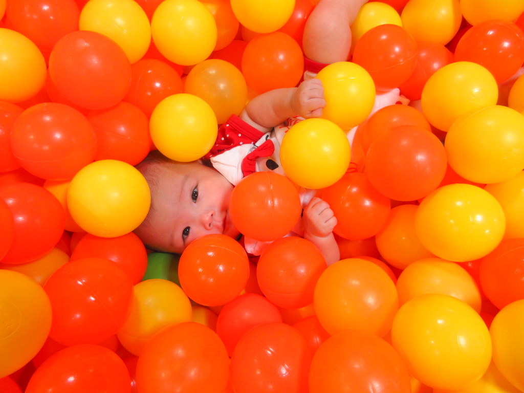 赤ちゃんを連れて行って、ボールの感触を楽しんでもらいます。