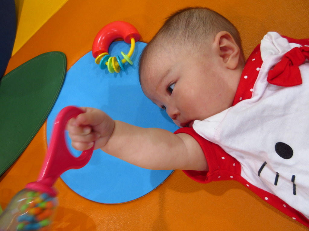 色とりどりのおもちゃってやはり赤ちゃんが興味津々、触り心地もいいですね(⌒▽⌒)