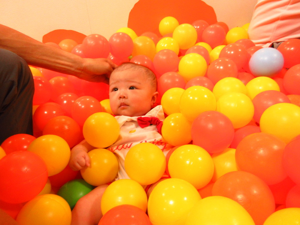 赤ちゃんを連れて行って、ボールの感触を楽しんでもらいます。
