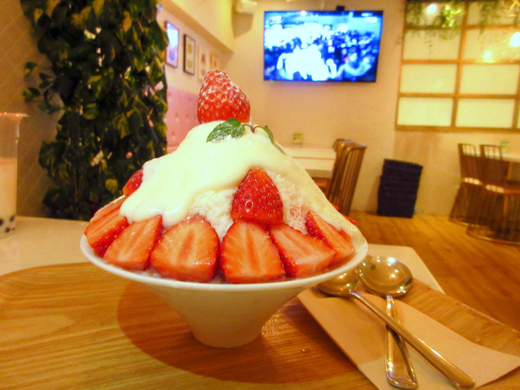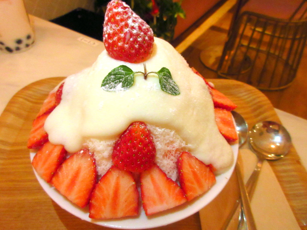 台湾でいえば雪花氷と呼ばれるミルクを薄く削ったふわふわのかき氷なのですが、