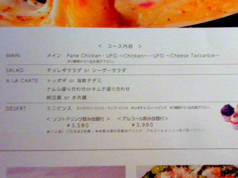 パネチキンやUFOチキンフォンデュはコース料理のみの提供でしたが、