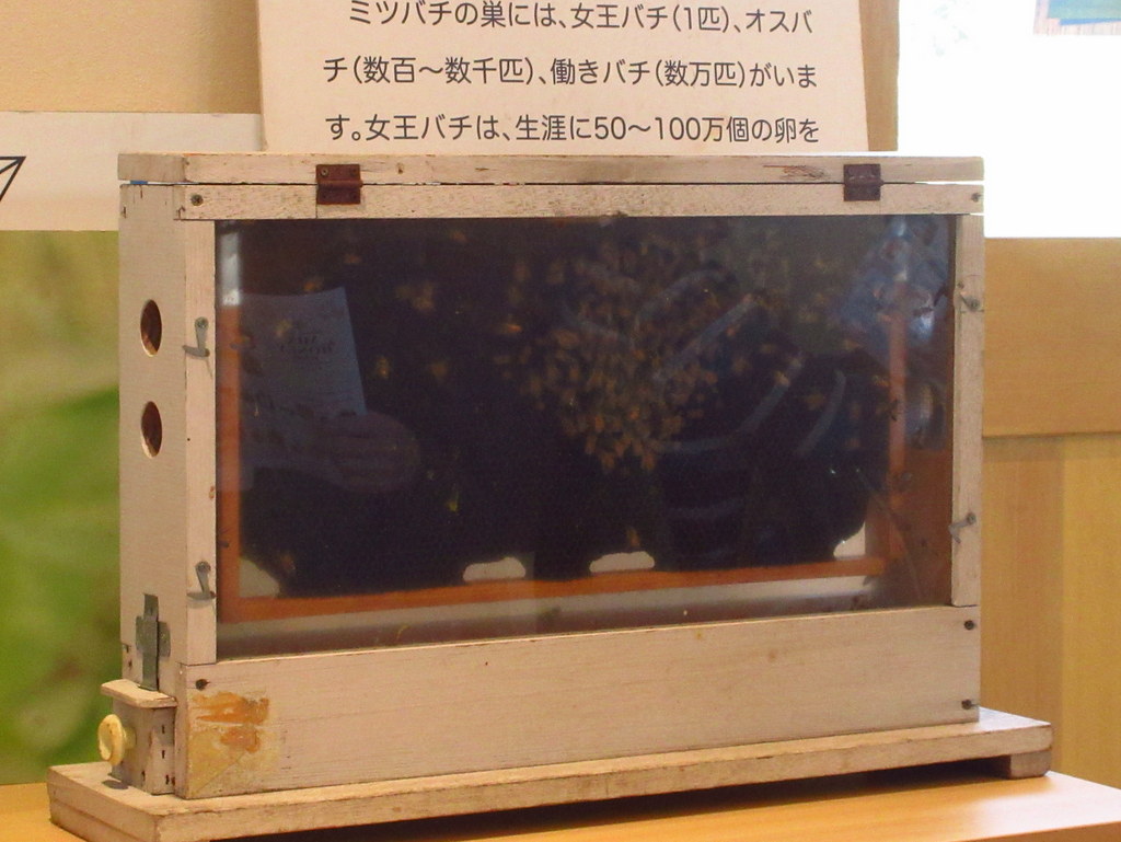 驚いたのが、実際に生きている蜂の様子がショーケースで