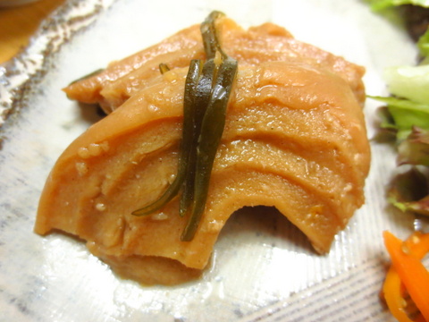 泡盛や醤油で甘辛く味付けした沖縄料理。