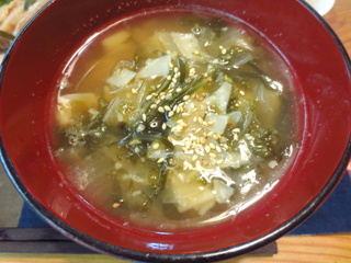 スープは、沖縄そばをイメージした アーサ(あおさ)汁。