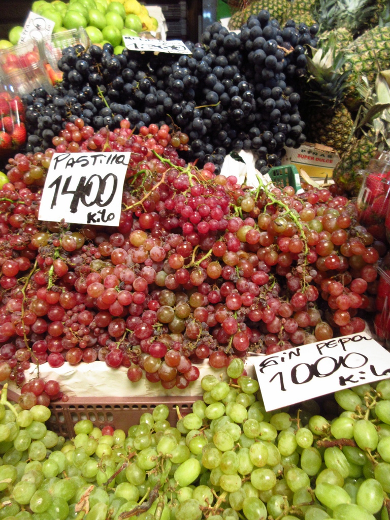 チリにはいろんな種類のぶどうが市場に並んでいました。