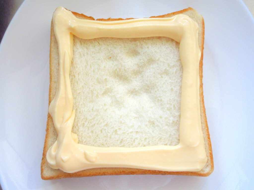 食パンの淵をマヨネーズでぐるっと囲むことで、具材がこぼれないように