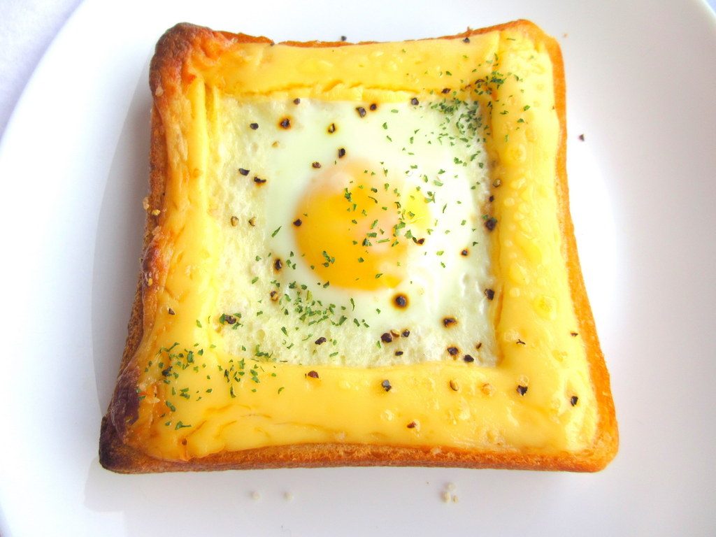 「土手」を作り、中に具を入れて焼いたトーストのこと。