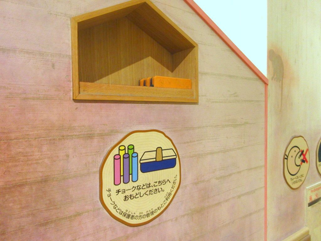 大きな黒板があり、チョークでお絵かきができるスポットです。