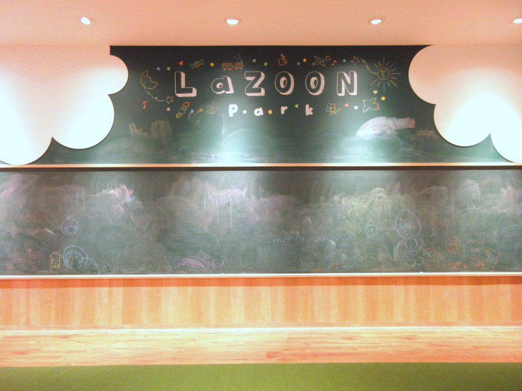 大きな黒板があり、チョークでお絵かきができるスポットです。