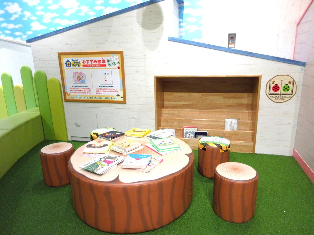 絵本が並んでいて、読み聞かせなどをして遊べるスペースです。