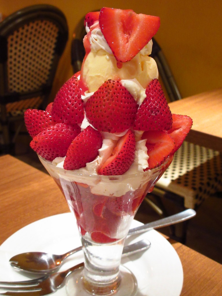新鮮な生のイチゴをふんだんに使ったパフェです。