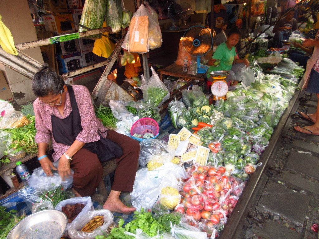 電車が通るときになると慣れた手さばきで野菜などを片付け、