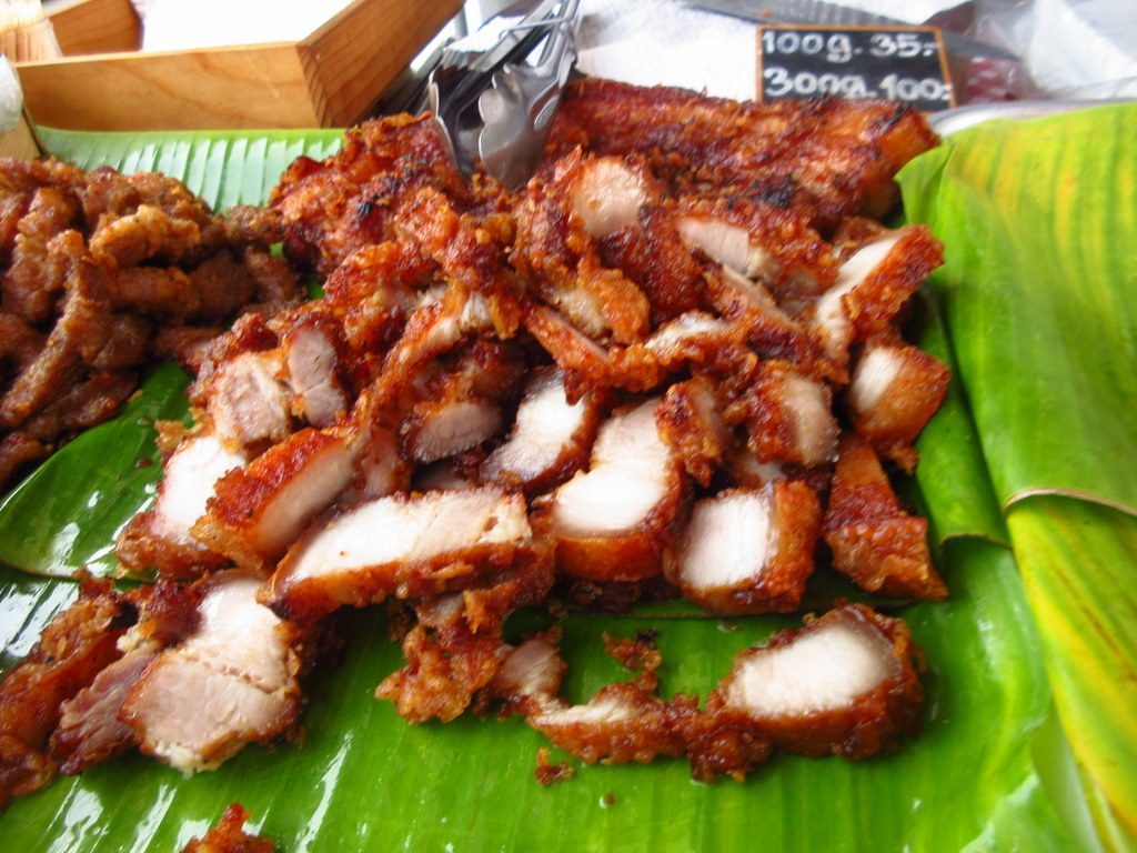 このお店は豚の三枚肉やチキンを甘辛く味付けしていました。