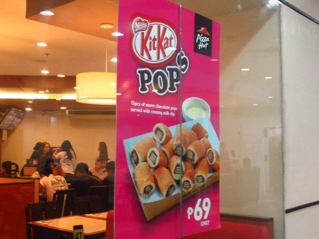 フィリピンでよく見るスタイルの美味しいチキンのお店やピザハットなどがありました。