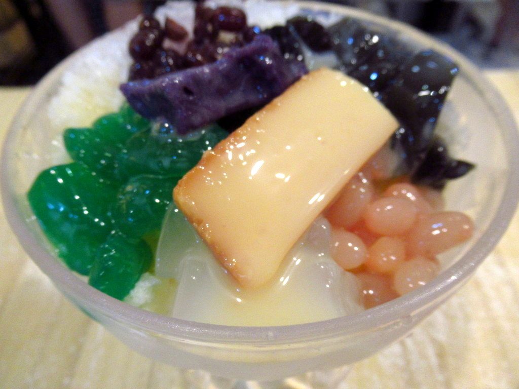 かき氷の上に様々な具材をトッピングしているアジアンスイーツなのです。
