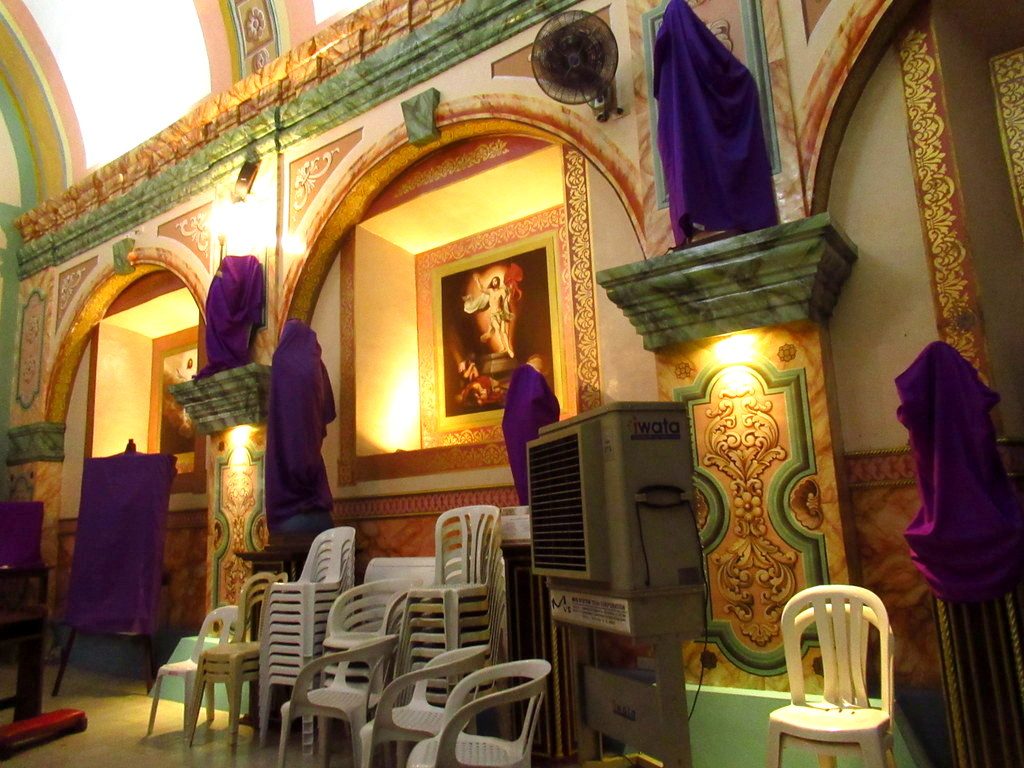 中に入ると、教会の中の像には全て紫の布が覆いかぶされていました。