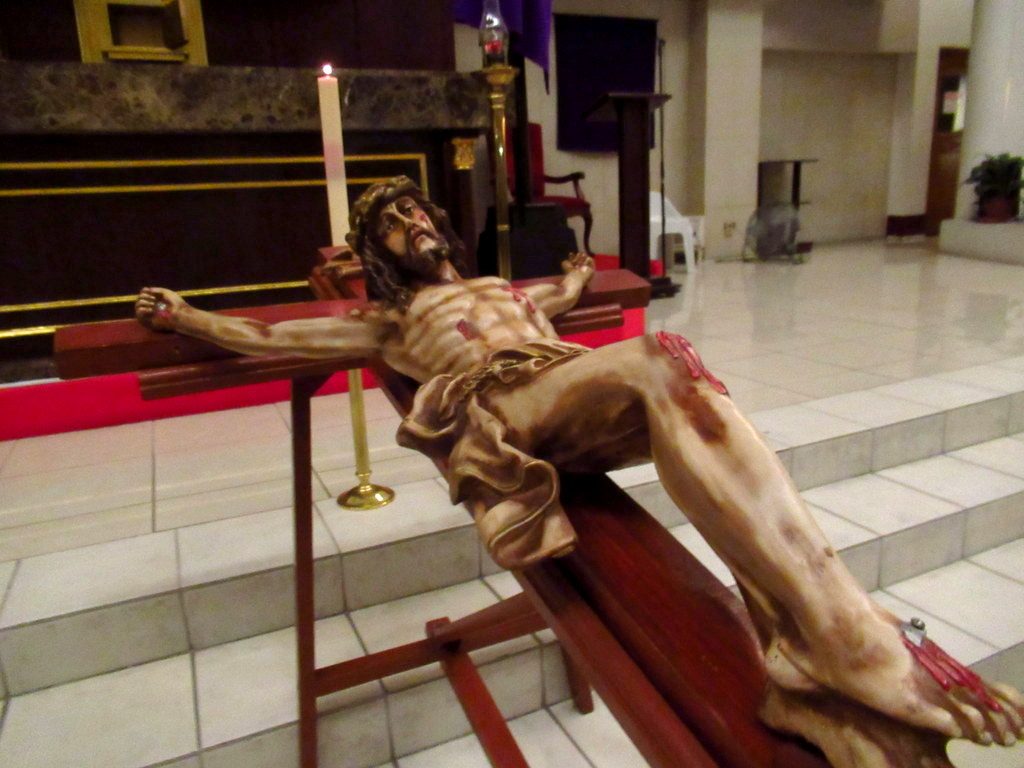 ここにある大きな教会でも、磔(はりつけ)になったキリストの像が