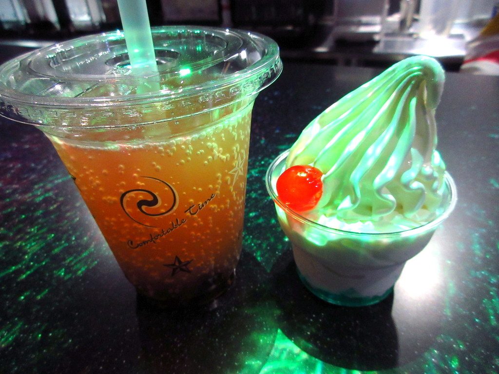 ソフトクリームの下には青色のミントゼリーが入っています。