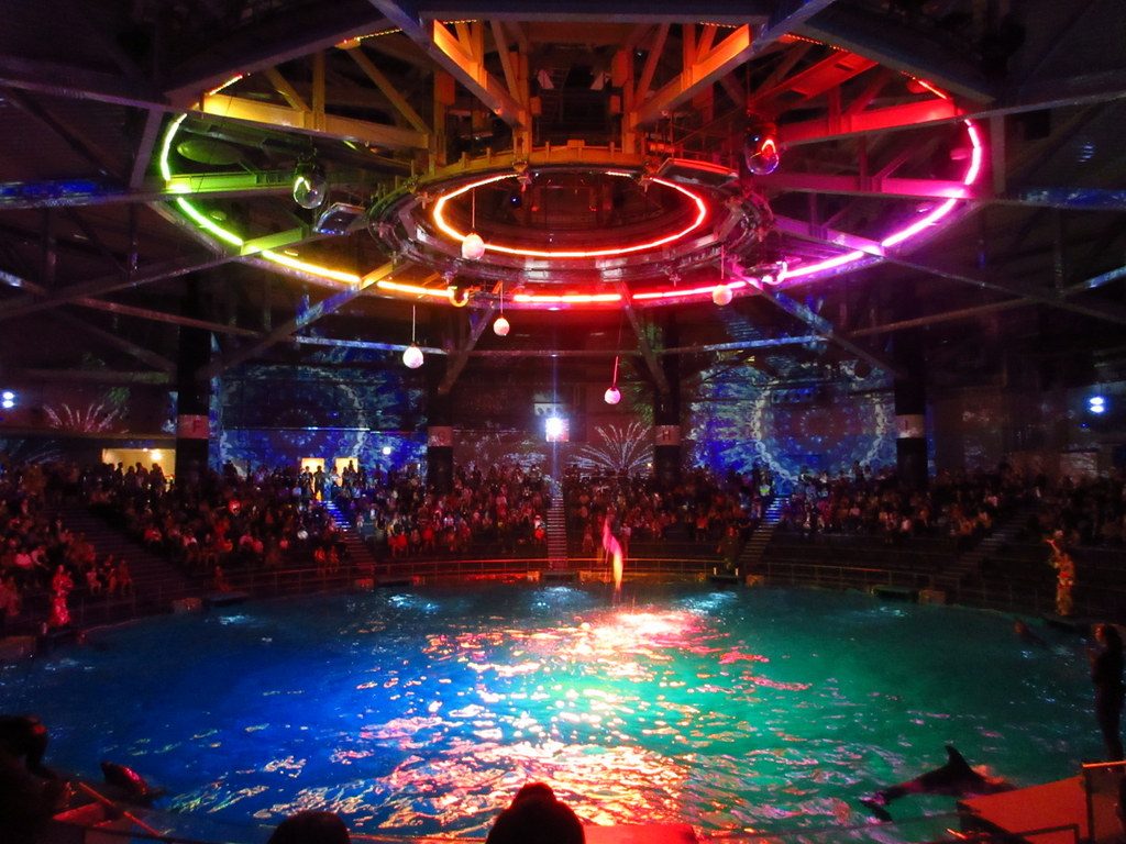 水と光と映像と音の演出にイルカのパフォーマンスが重なって、